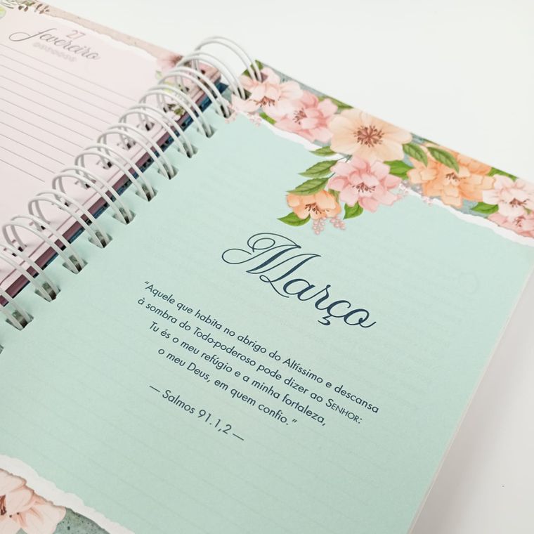 As tarefas das mulheres hoje são das mais variadas, pois alêm de cuidar de seus lares em muitos casos ainda trabalham fora, isso para não mencionar aquelas que ainda desenvolvem ministérios na igreja. Pensando nisso a editora Luz e Vida traz a agenda permanente Maravilhosa Graça, personalizada e que á cada Página há uma ilustração de ensino e instrução para as mulheres. Quanto ao acabamento não poderíamos imaginar nada melhor vindo de uma editora tão compromissada, com ilustrações floridas para trazer certa leveza e simplicidade, com tons e cores singelas, tudo em capa dura para dar resistência, durabilidade e consistência. Na primeira Página temos um pequeno espaço para guardar algumas anotações e folhetos, com um belo acabamento apresentado com leveza e ilustrações floridas. A agenda possui uma ficha onde a mulher poderá registrar seus dados pessoais, bem como telefone, endereço entre outras informações importantes. Como se trata de uma agenda, já temos logo nas próximas Páginas um calendário, assim as mulheres poderão marcar seus compromissos e atividades de maneira organizada para não esquecerem sequer um dia importante. A agenda Maravilhosa Graça dispõe de um planejamento mensal já embutido em um semanal, assim todas as atividades alêm de anotadas serão sistematicamente inseridas, dia a dia. Há um espaço dedicado para oração, assim as irmãs poderão ali dedicar momentos a auxiliar outros, e assim cumprir os mandamentos da Escritura que dizem: Orai uns pelos outros. Finalizando temos as Páginas ilustradas, para que alêm de uma agenda você também possa ter um acessório esteticamente belo no manuseio, fechando com uma agenda telefônica e um espaço reservado para anotações de diversas naturezas que assim você desejar. Assim sendo temos um ótimo material, de grande utilidade e como estamos falando em público feminino, um lindo acessório para que as irmãs possam levar á igreja ou trabalho.