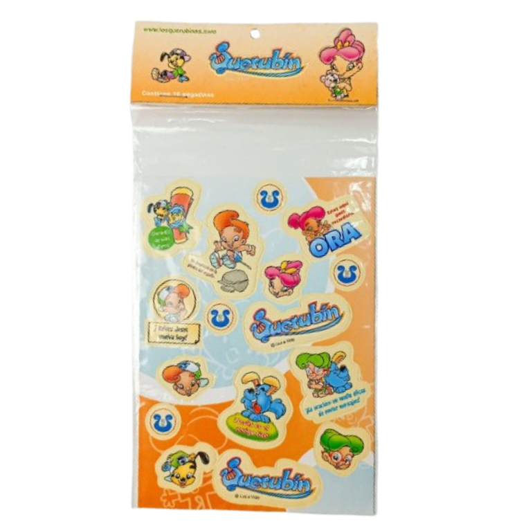 Uma cartela adesiva linda e divertida da Turminha do Querubim com dizeres em Espanhol para voc� colecionar.