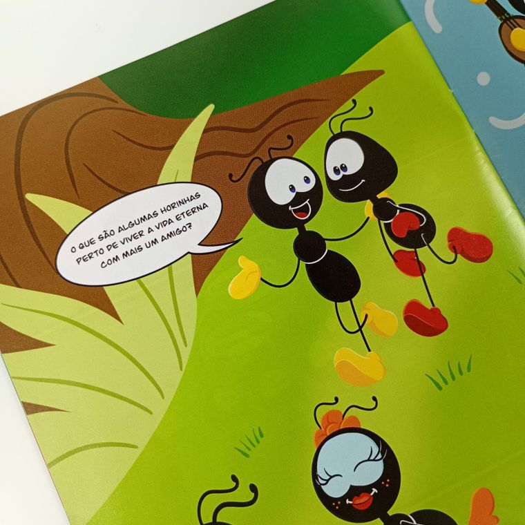 Neste Gibi, você vai conhecer Ely, uma formiguinha novata que carrega no coração a dor de nunca ter um lar.Tudo parece perdido quando ele encontra Smi, Piriá e Faniquita, três amigos cheios de alegria que guardam um segredo transformador: Apresentar a Ely o maior amigo de todos, Jesus. Uma história emocionante que revela como a verdadeira felicidade nasce ao descobrir a amizade eterna em Cristo.